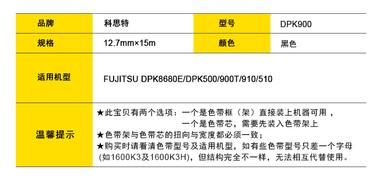 商品名称:科思特 DPK500/DPK900色带架 适用富士通 DPK8680E/DPK500/DPK900T/910/510 黑色