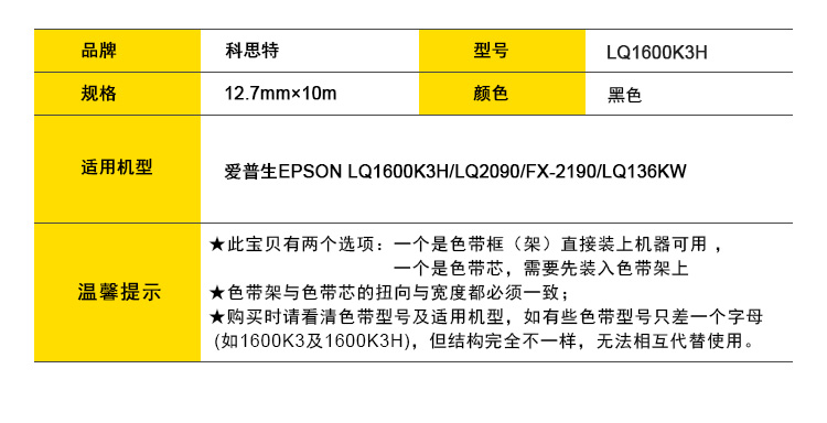 适用机型:EPSON LQ136KW/LQ1600K4H