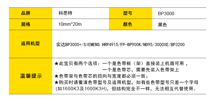 商品名称:科思特 BP3000/HPR4915/ND95 色带架 适用实达 BP3000+/HRP4915/FP-BP900K/ND95/3000XE/BP3200 黑色