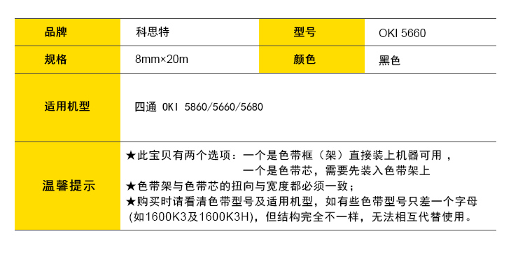商品名称:科思特 5860/5660/BP2000 色带芯 适用四通 5860SP 黑色