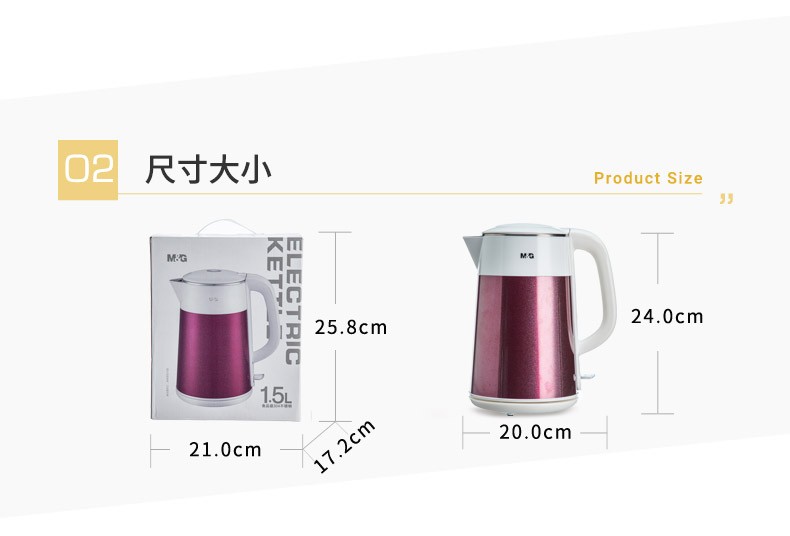 商品名称:晨光双层防烫不锈钢1.5L电热水壶ARCN8281