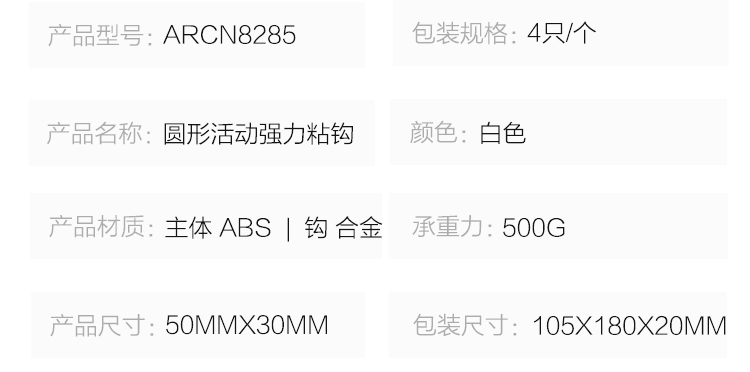 商品名称:晨光圆形活动强力粘钩0.5kg4只装ARCN8285