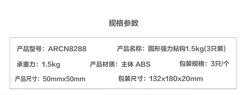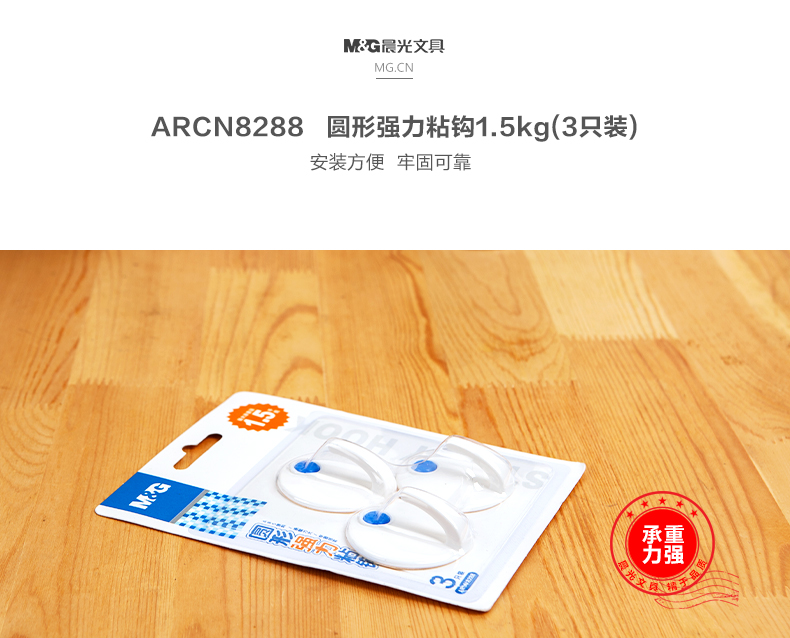 商品名称:晨光圆形强力粘钩1.5kg(3只装)ARCN8288