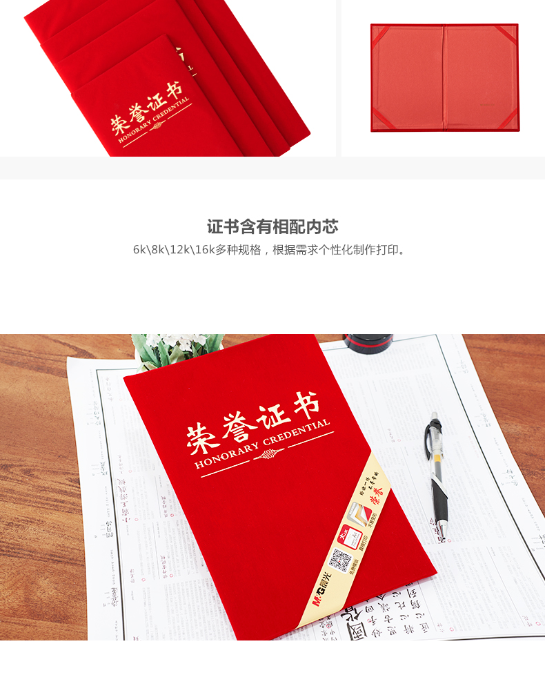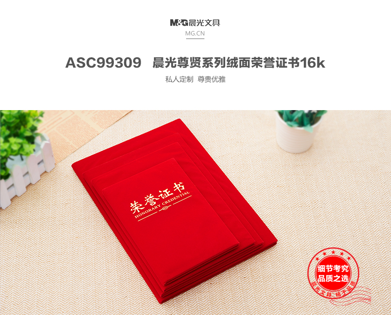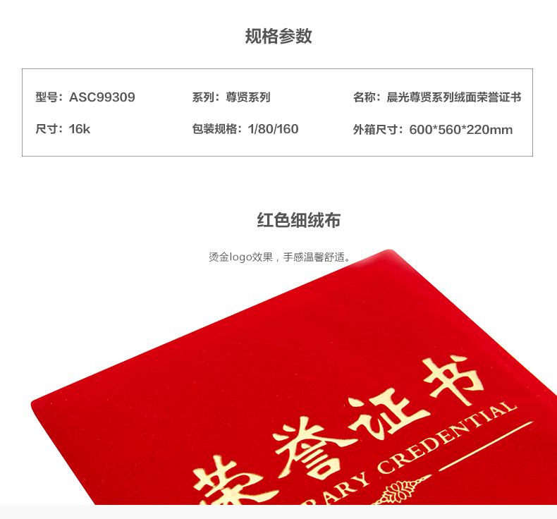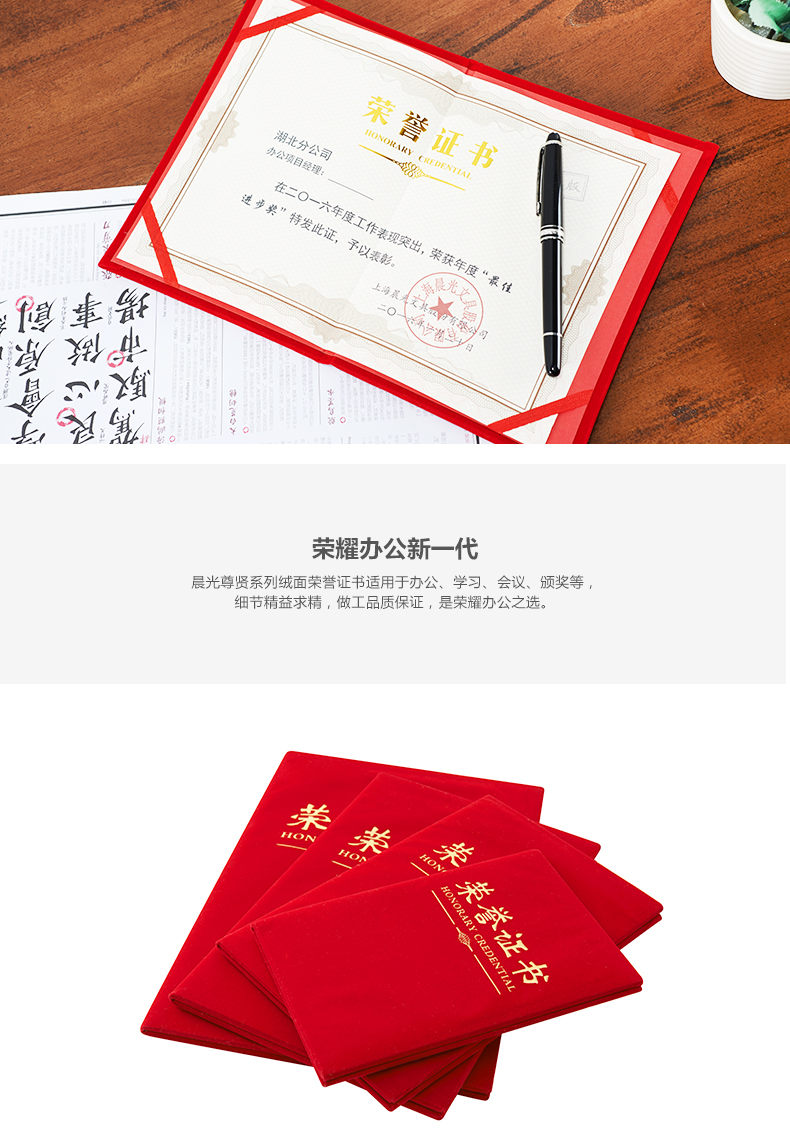 商品名称:晨光尊贤绒面荣誉证书16K ASC99309