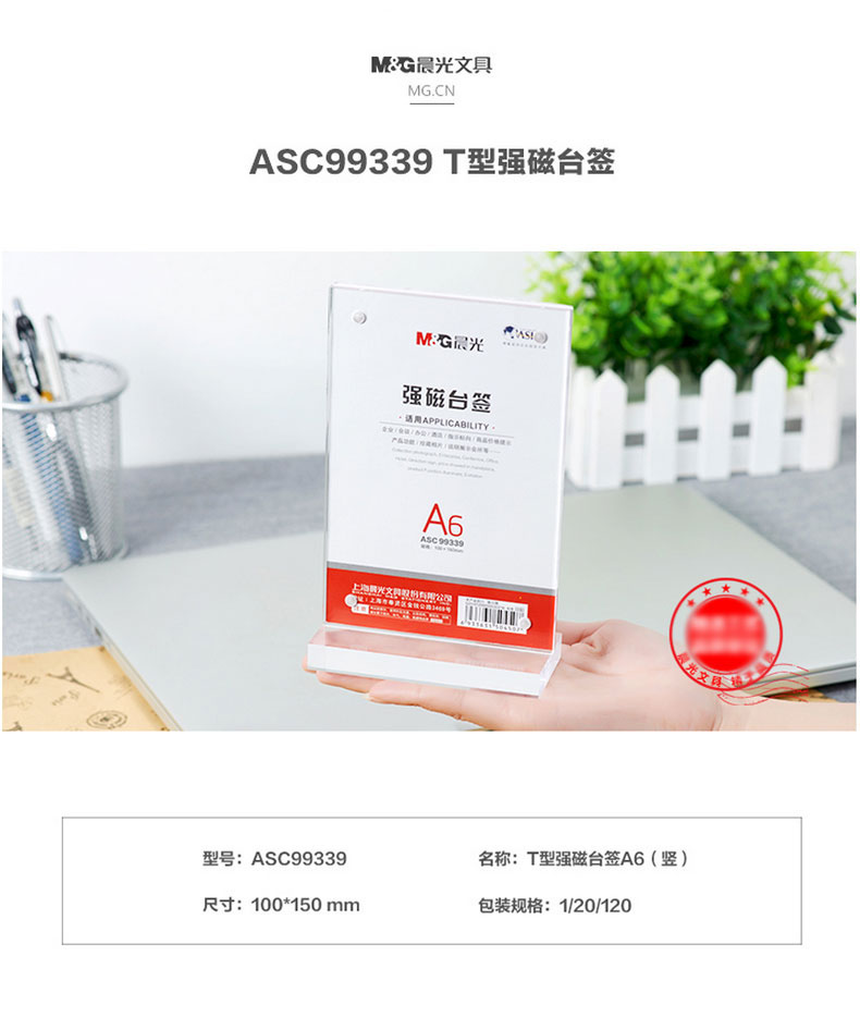 商品名称:晨光T型强磁台签A6(竖)ASC99339