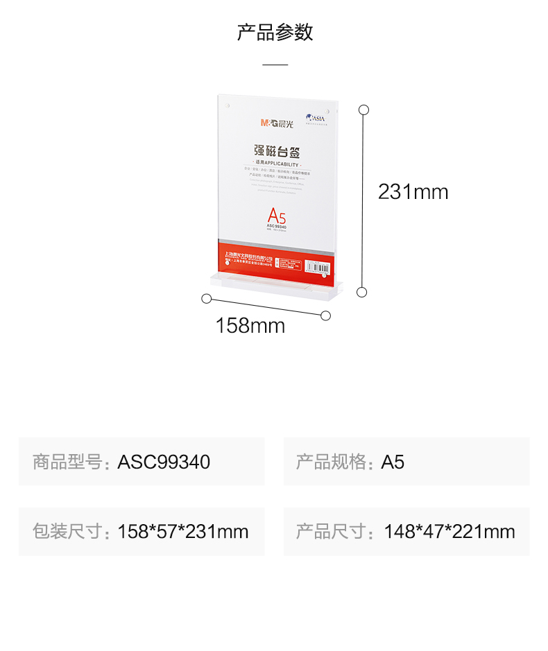 商品名称:晨光T型强磁台签A5(竖)ASC99340