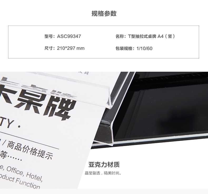 商品名称:晨光T型抽拉式桌牌A5(横)ASC99343