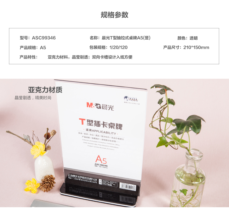 商品名称:晨光T型抽拉式桌牌A5(竖)ASC99346