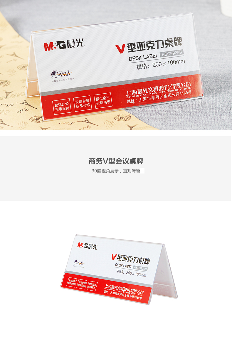 商品名称:晨光商务V型会议桌牌180*100mmASC99352
