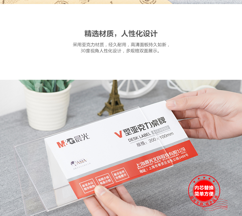 商品名称:晨光商务V型会议桌牌200*100mmASC99353