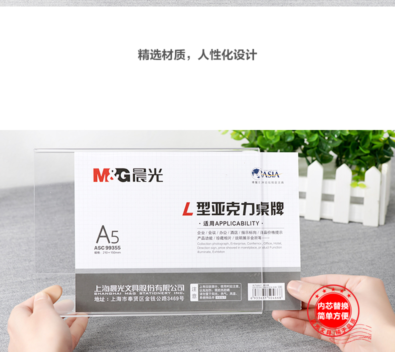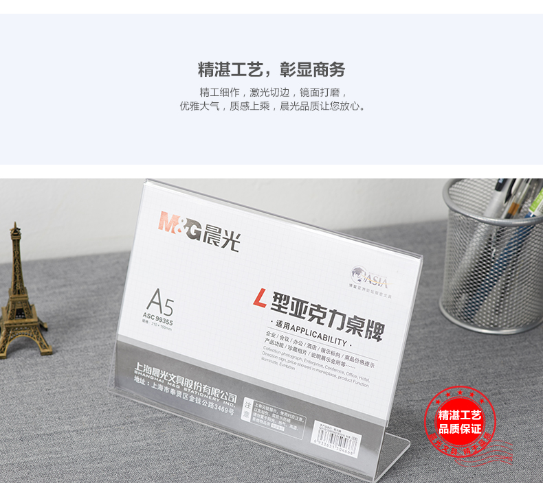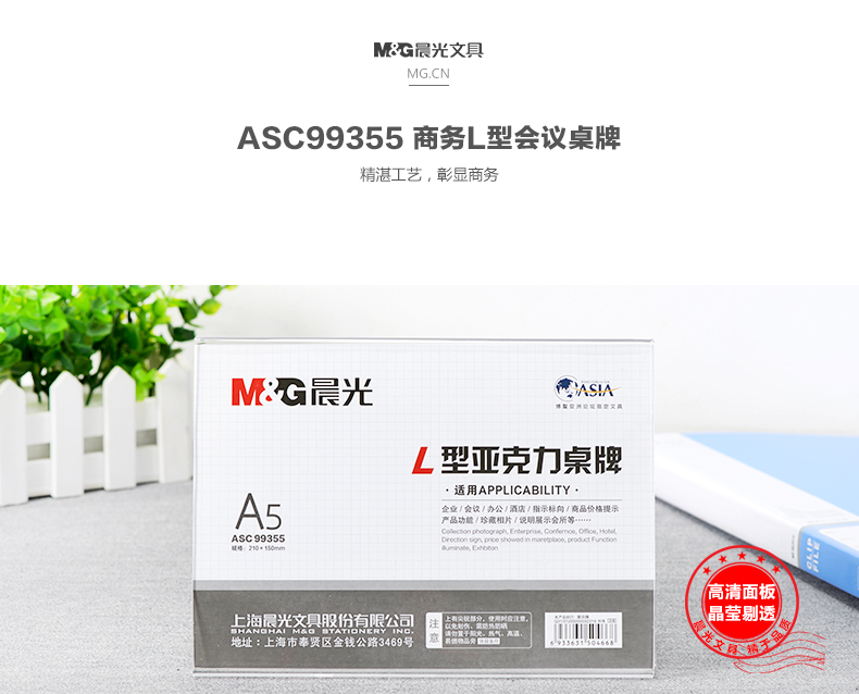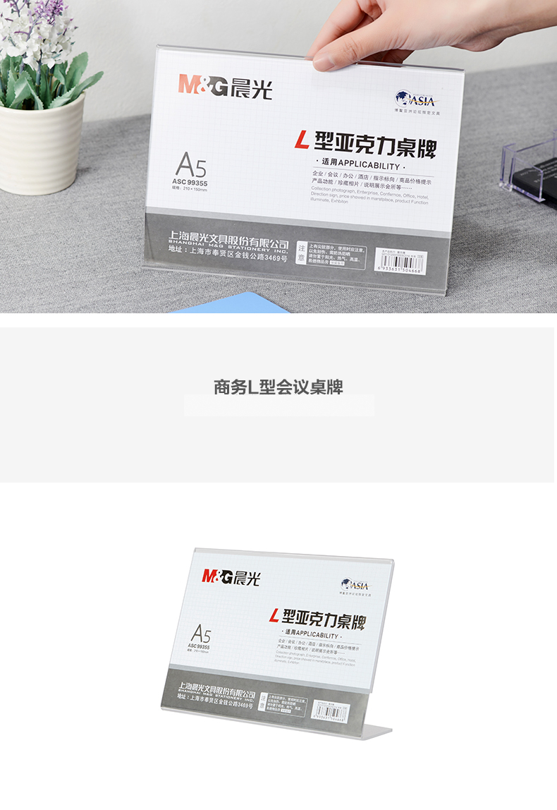 商品名称:晨光商务L型会议桌牌A5(横)ASC99355