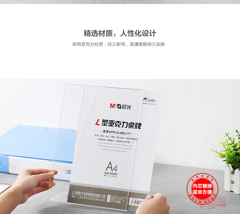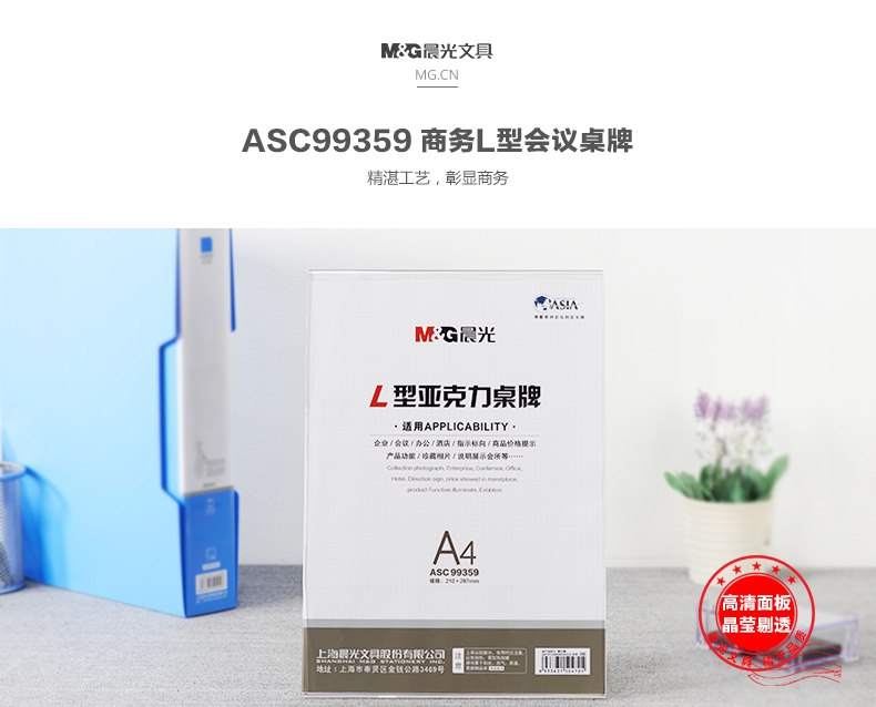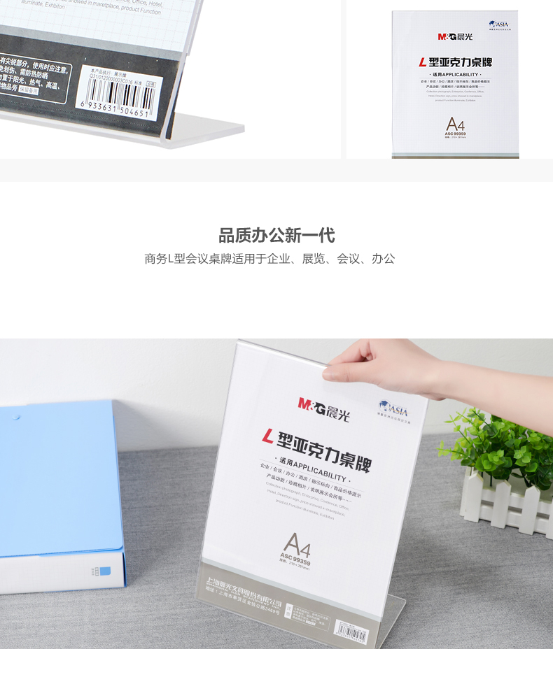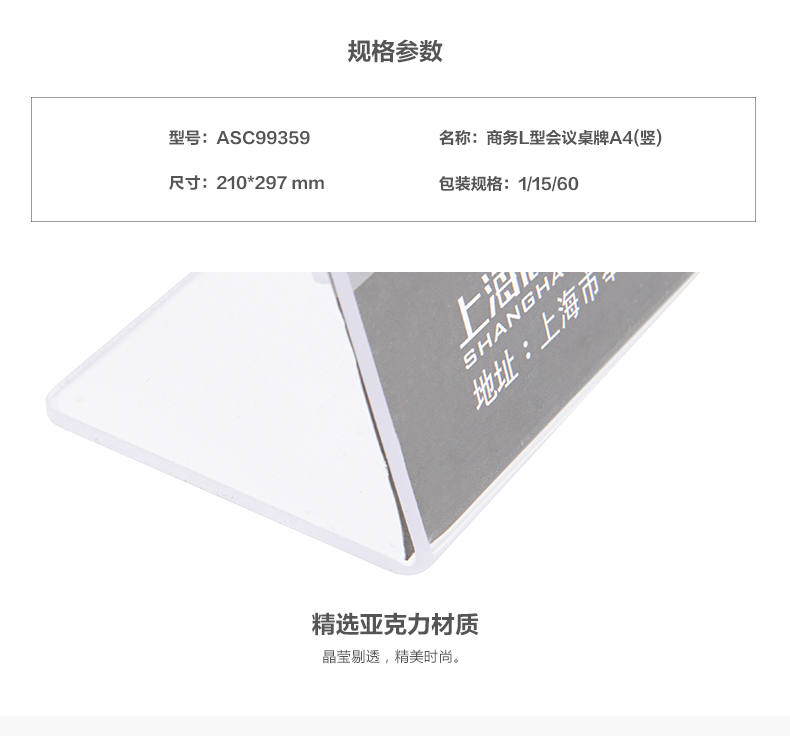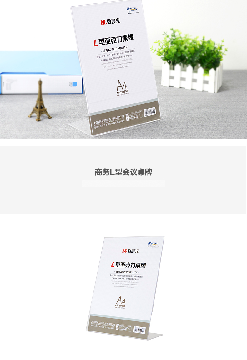 商品名称:晨光商务L型会议桌牌A4(竖)ASC99359