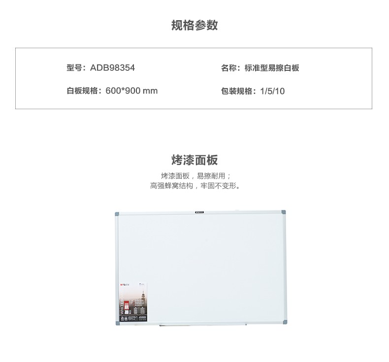 商品名称:晨光标准型易擦白板600*900mmADB98354
