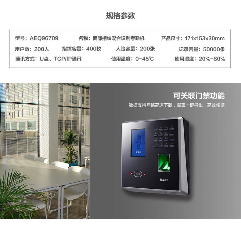 商品名称:晨光面部指纹混合识别考勤机AEQ96709