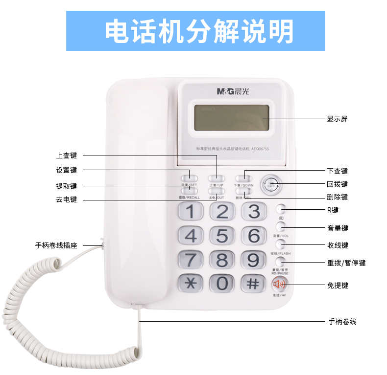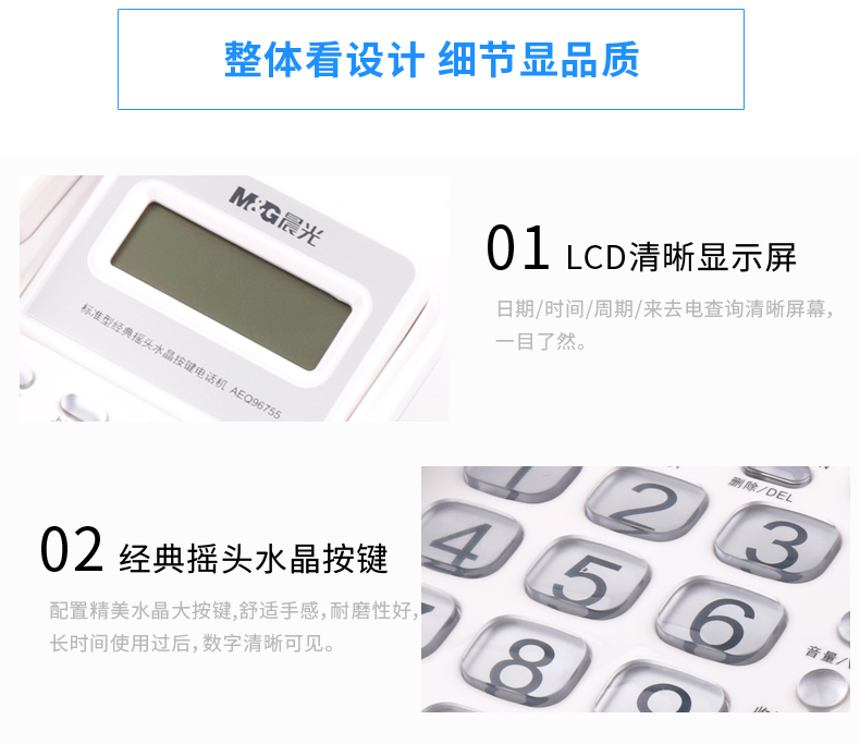 商品名称:晨光标准经典摇头水晶按键电话机AEQ96755黑
