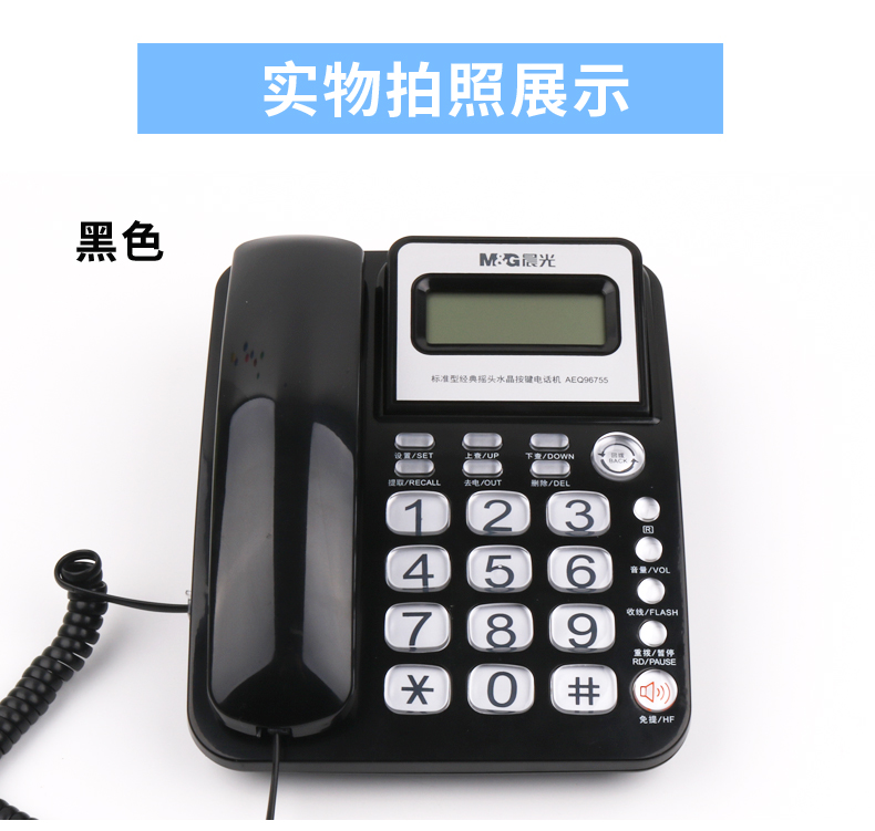 晨光标准经典摇头水晶按键电话机AEQ96755黑