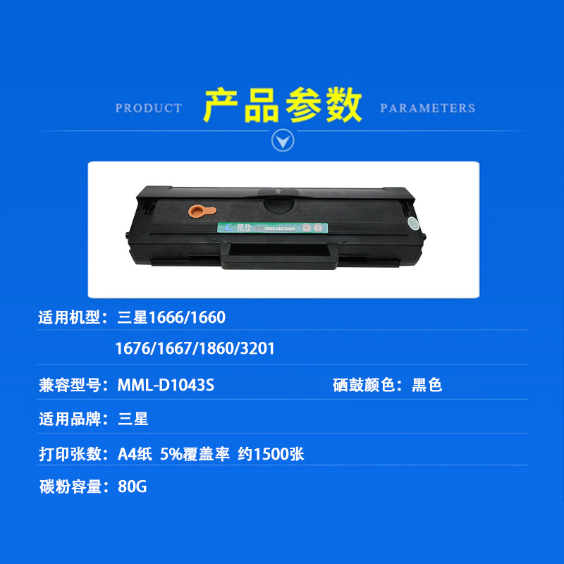 商品名称:凯欣KX-MLT 1043 硒鼓1支/1盒 黑色适用于三星 ML-1666/1661/3201/3206/1676