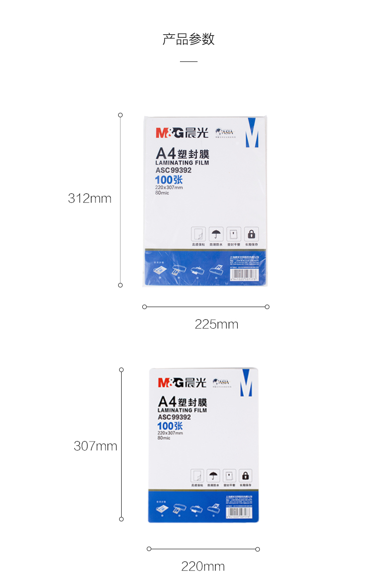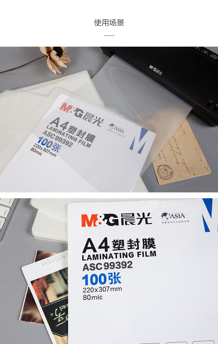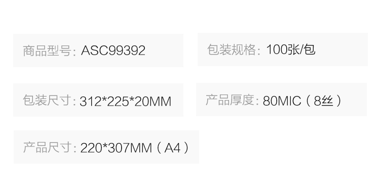商品名称:晨光A4塑封膜(80mic)100张ASC99392