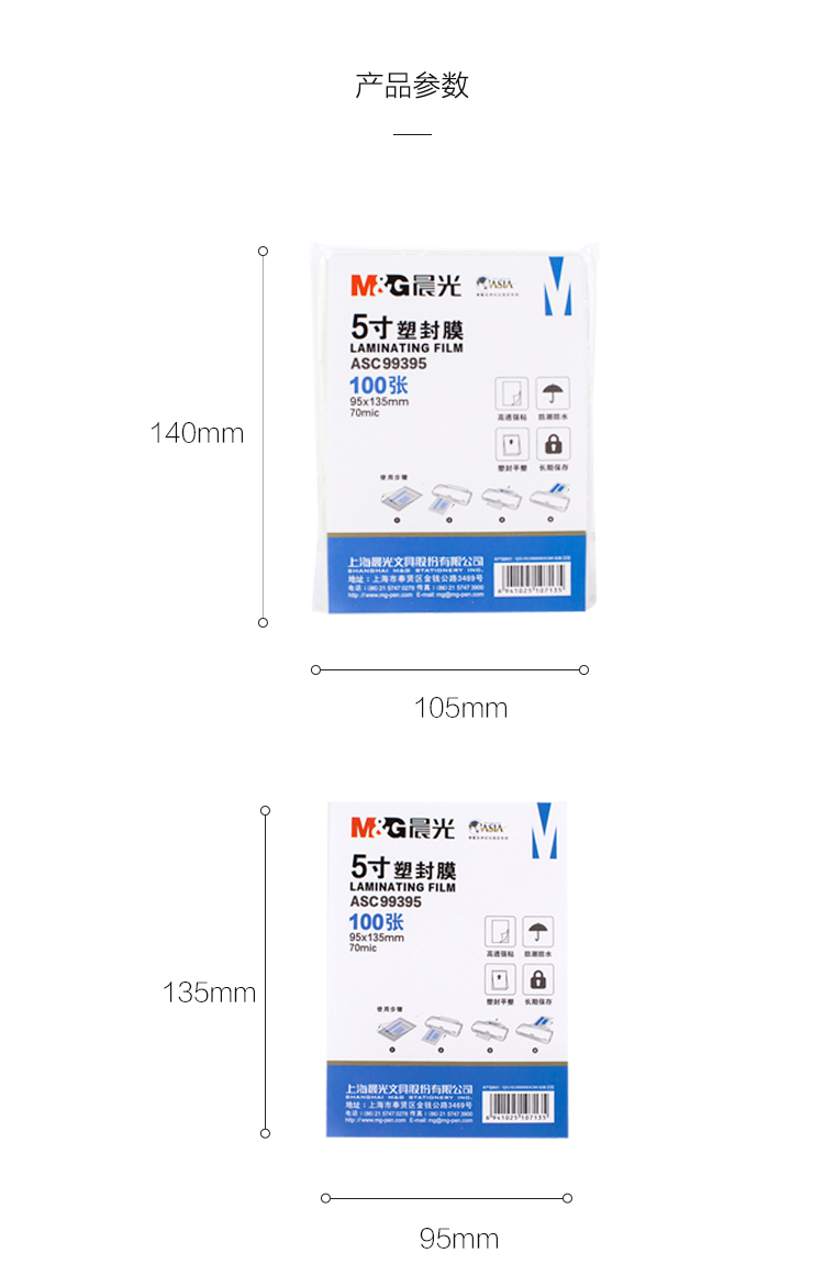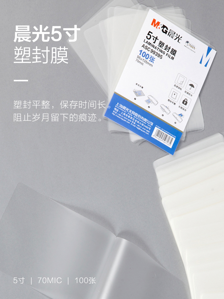 商品名称:晨光5寸塑封膜(70mic)100张ASC99395