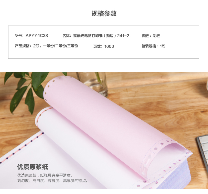 商品名称:打印纸蓝晨光(撕边)241-1(白)1/2APYY3C27B