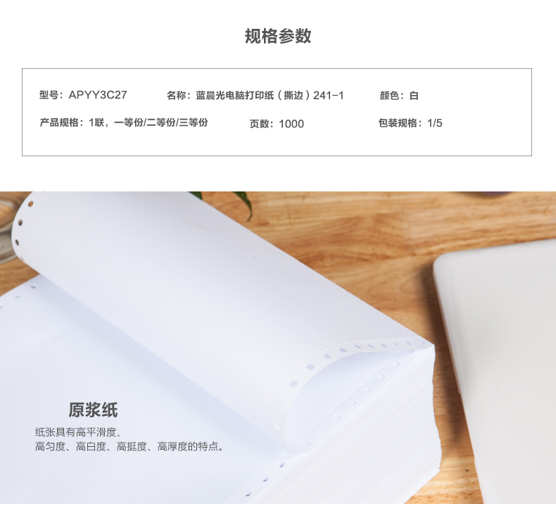 商品名称:打印纸蓝晨光(撕边)241-1(白)1/3APYY3C27C