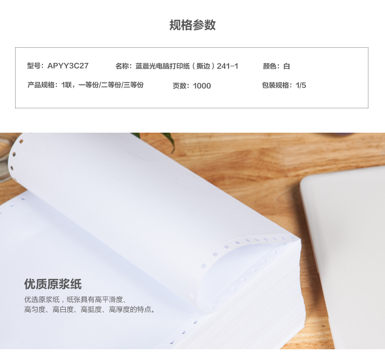 商品名称:打印纸蓝晨光(撕边)241-5(彩)APYY7C31A