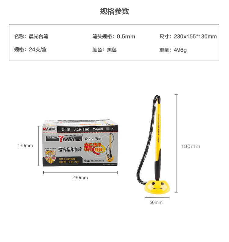 商品名称:晨光中性笔微笑服务台笔AGP16103黑0.5 24支/盒