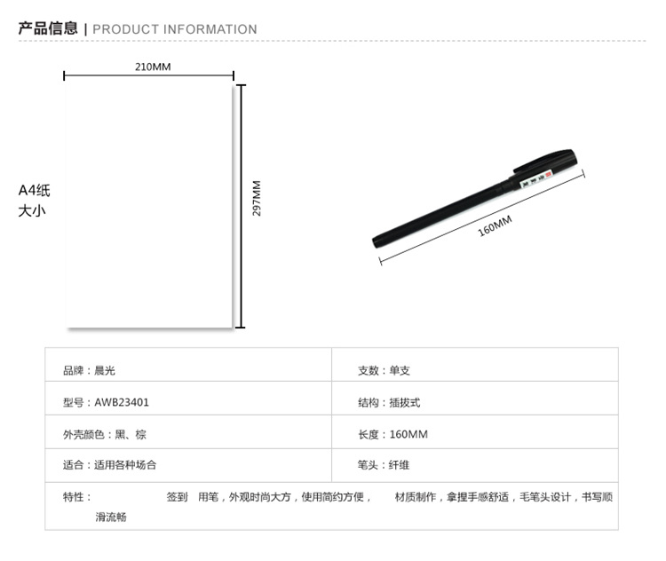 商品名称:晨光签到笔AWB23401黑40支/盒