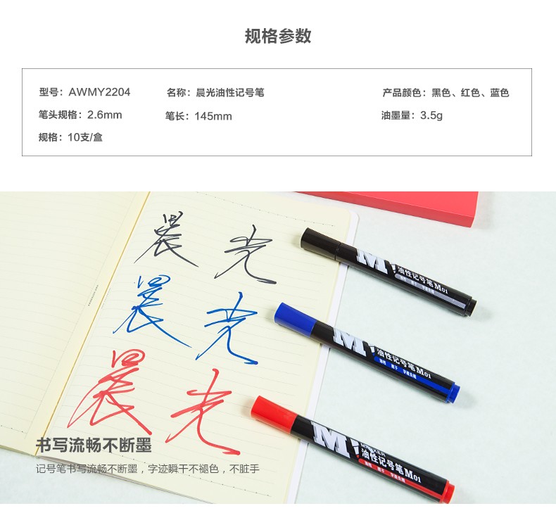 商品名称:晨光记号笔油性M01(蓝)APMY2204 10支/盒