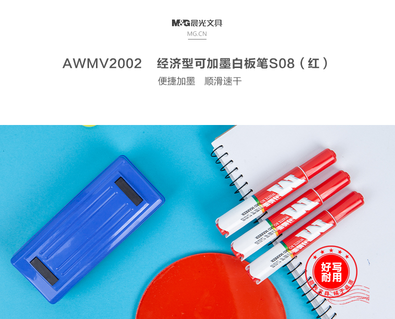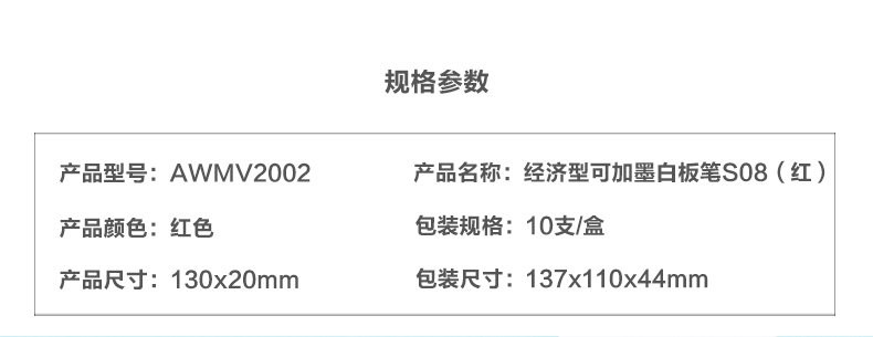 商品名称:晨光经济型可加墨白板笔S08(红)AWMV2002 10支一盒