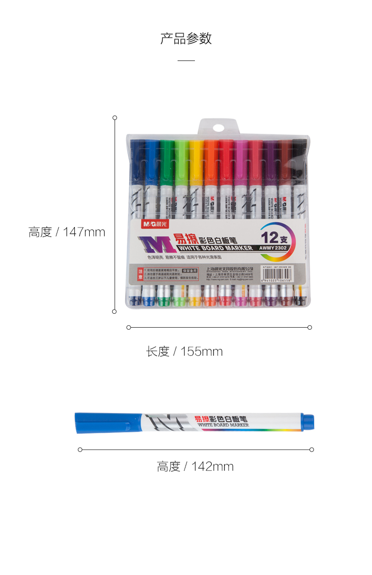 商品名称:晨光便携易擦彩色白板笔(12色)AWMY2302 10包装