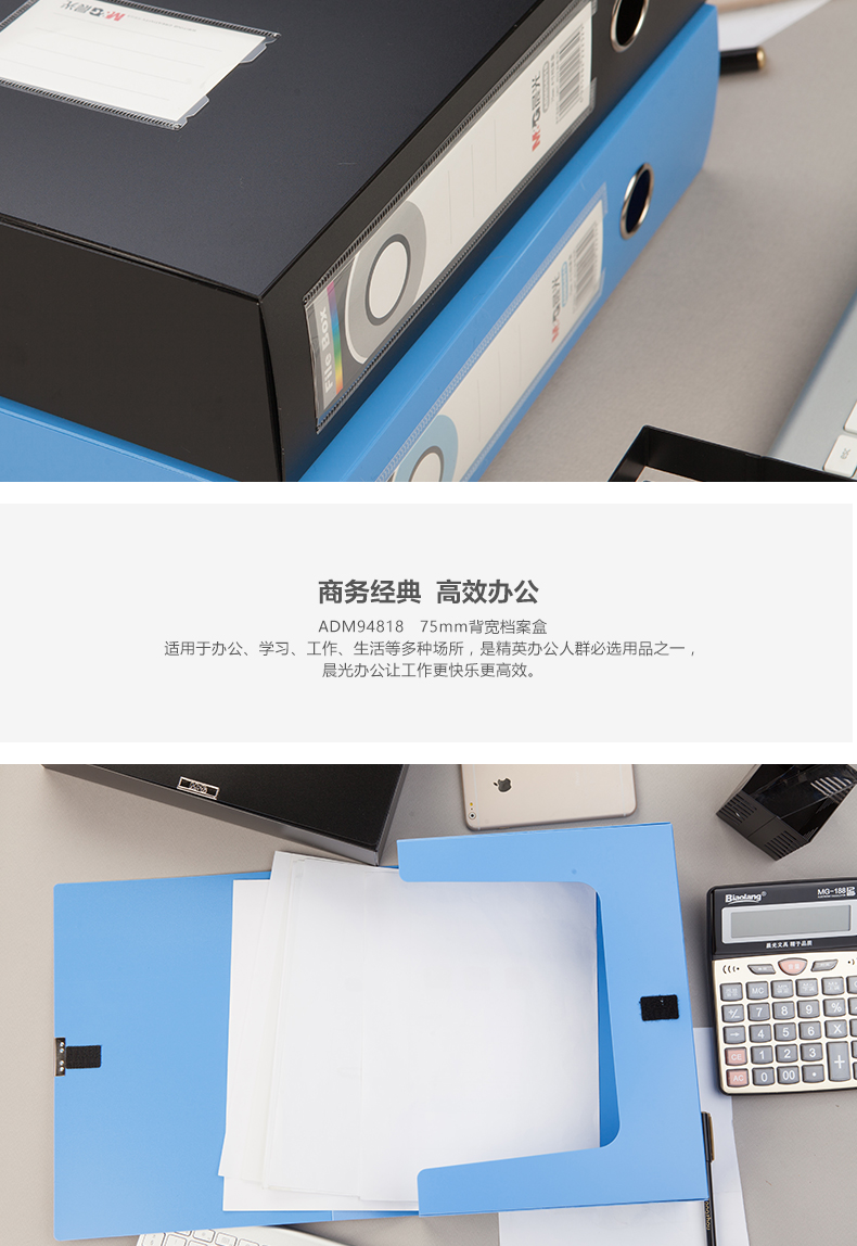 商品名称:晨光75mm背宽档案盒(黑)ADM94818A