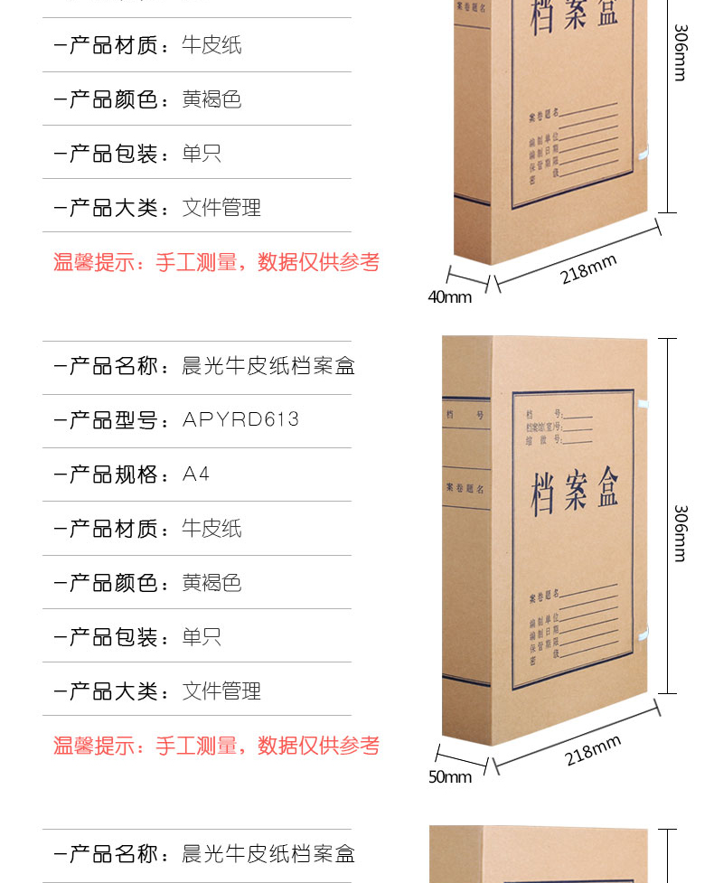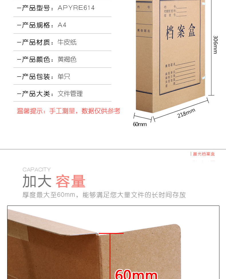 商品名称:晨光A4牛皮纸档案盒(4CM)APYRC61200