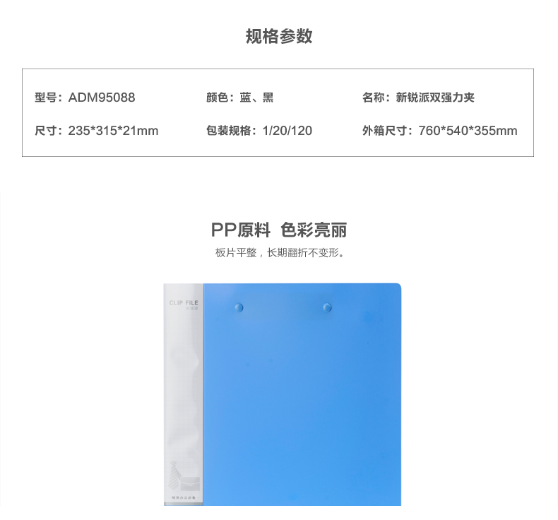 商品名称:晨光A4新锐双强力文件夹黑ADM95088