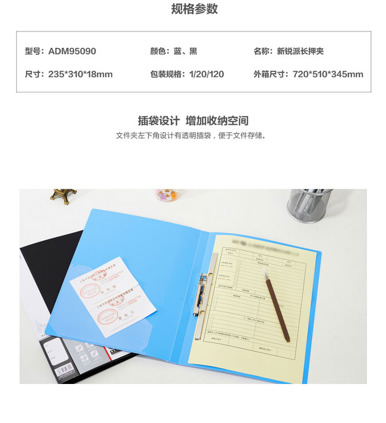 商品名称:晨光A4新锐派单长押文件夹蓝ADM95090