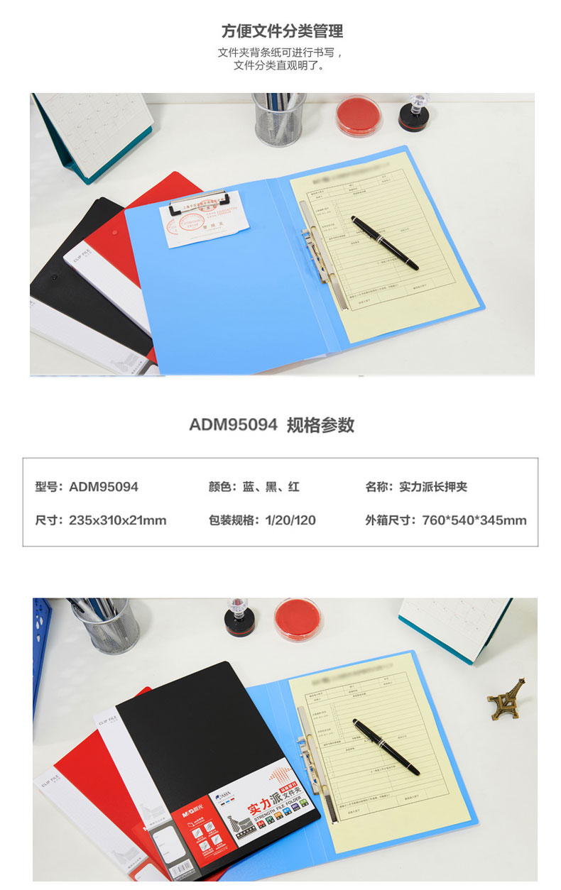 商品名称:晨光A4实力派单长押文件夹蓝ADM95094