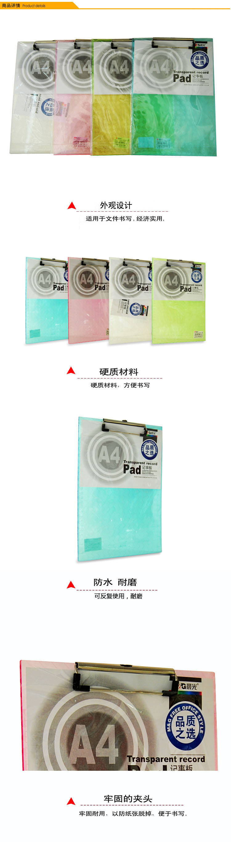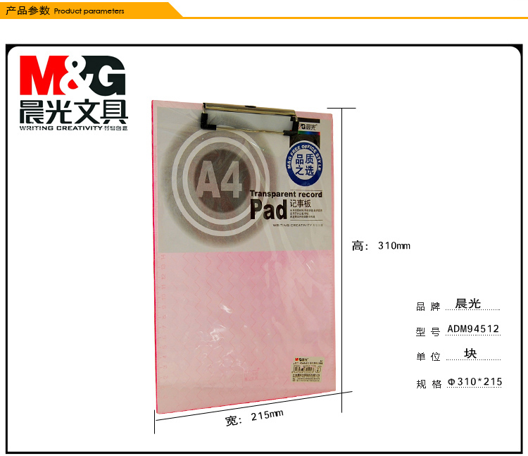 商品名称:晨光A4竖式透明记事板ADM94512