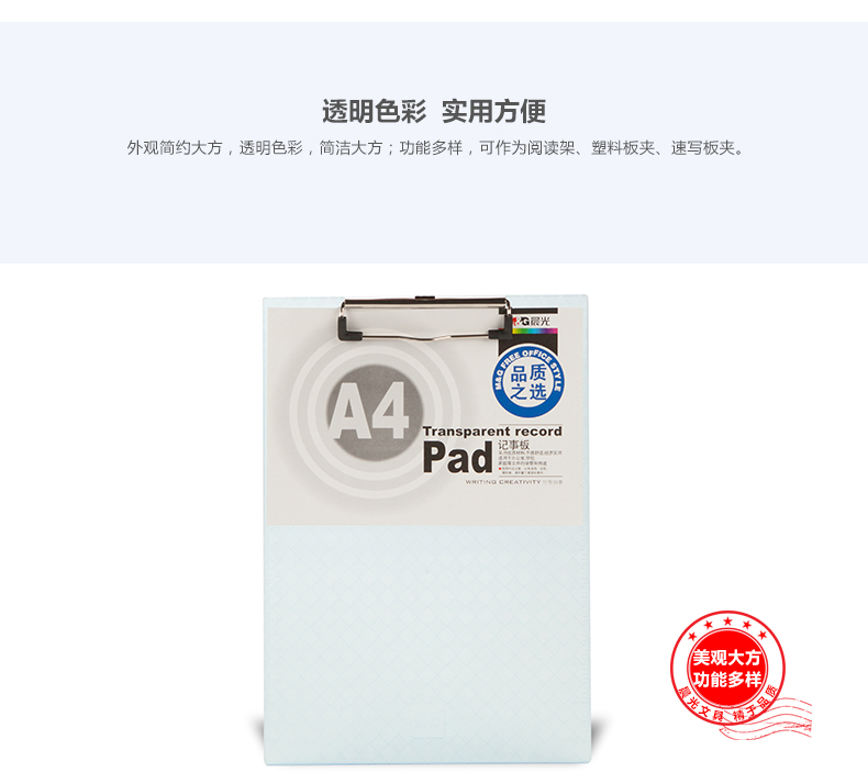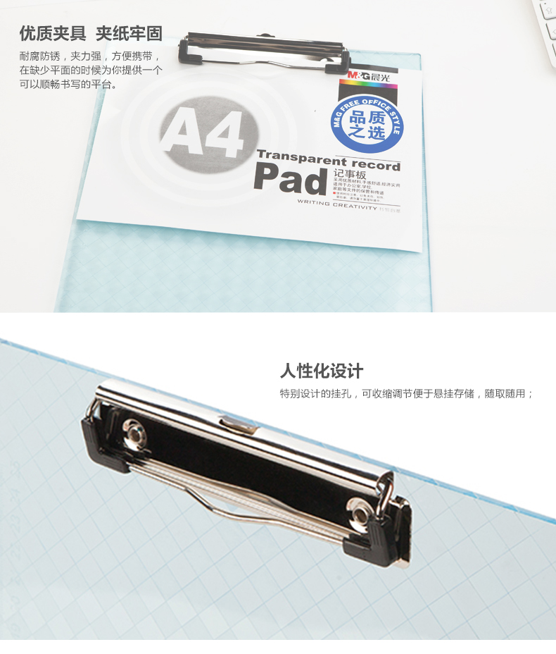 商品名称:晨光A4竖式透明记事板(蓝)ADM94512B