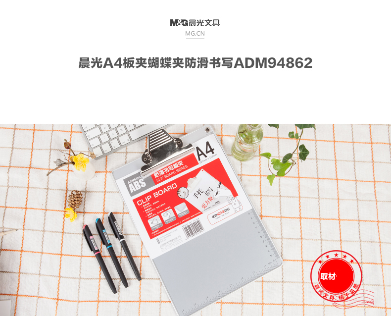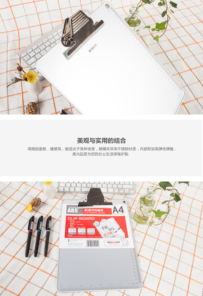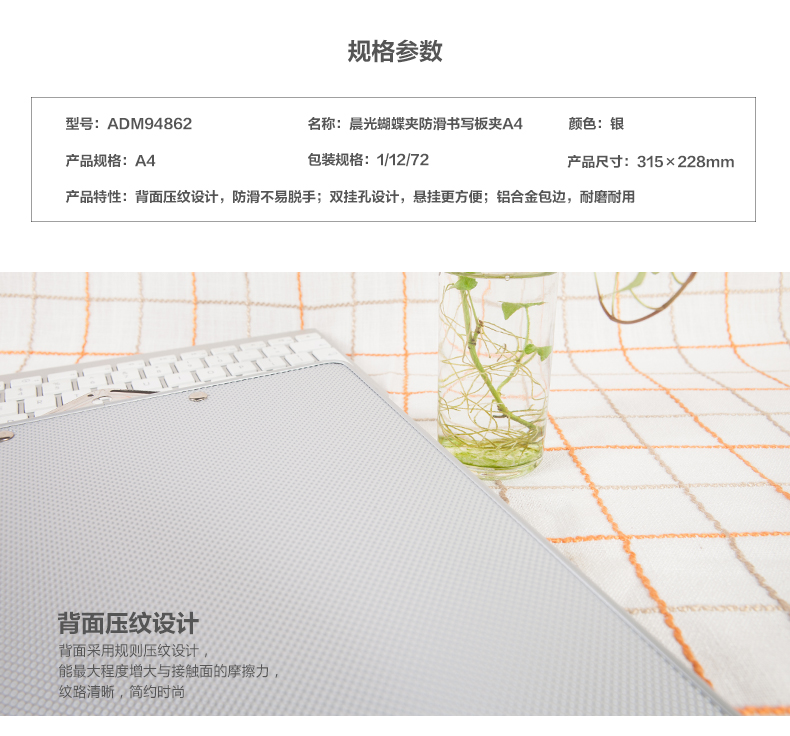 商品名称:晨光A4板夹蝴蝶夹防滑书写ADM94862