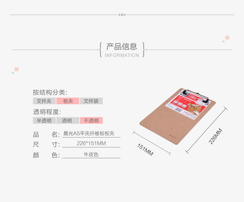 商品名称:晨光板夹平夹纤维板A5ADM94878