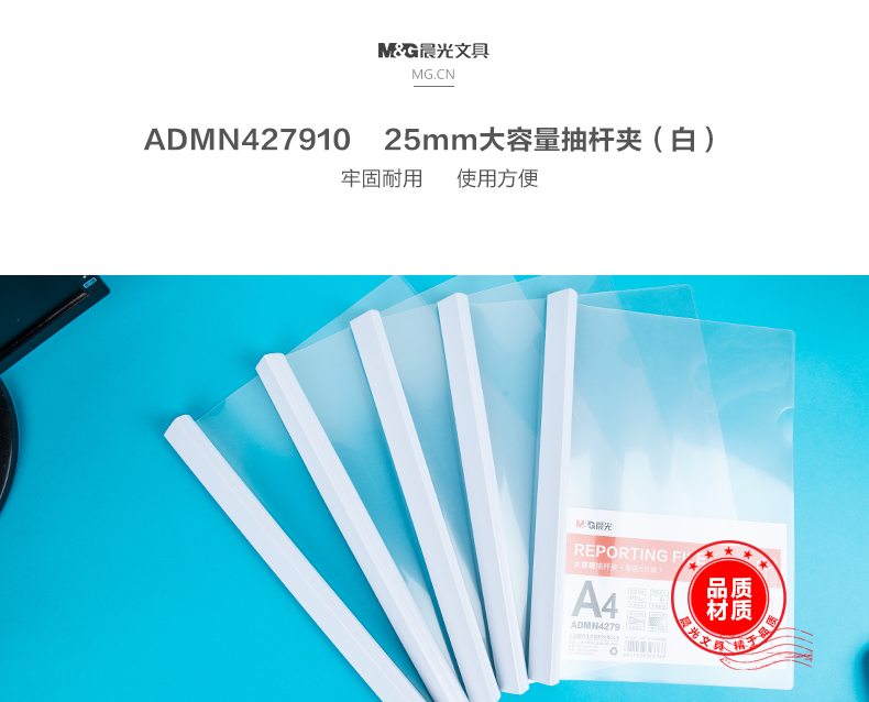 商品名称:晨光25mm大容量抽杆夹(白)ADMN4279 (5只装)