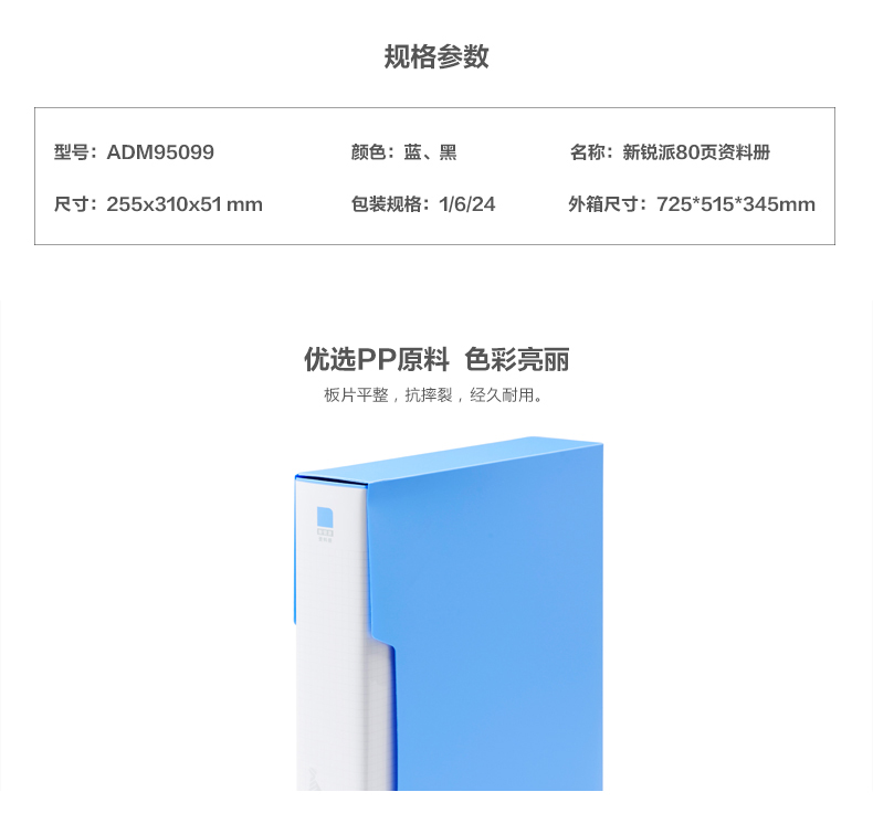商品名称:晨光80页新锐派塑套资料册黑ADM95099
