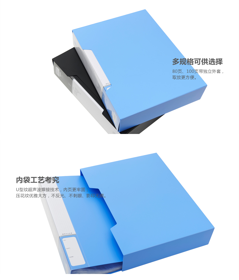 商品名称:晨光100页新锐派塑套资料册蓝ADM95101