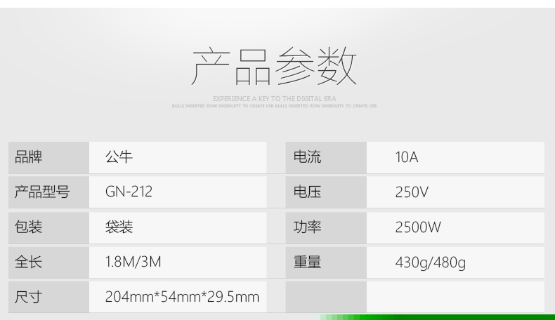 商品名称:公牛新国标 GN-212 1.8米-3位 插排 1.8米 电源插座