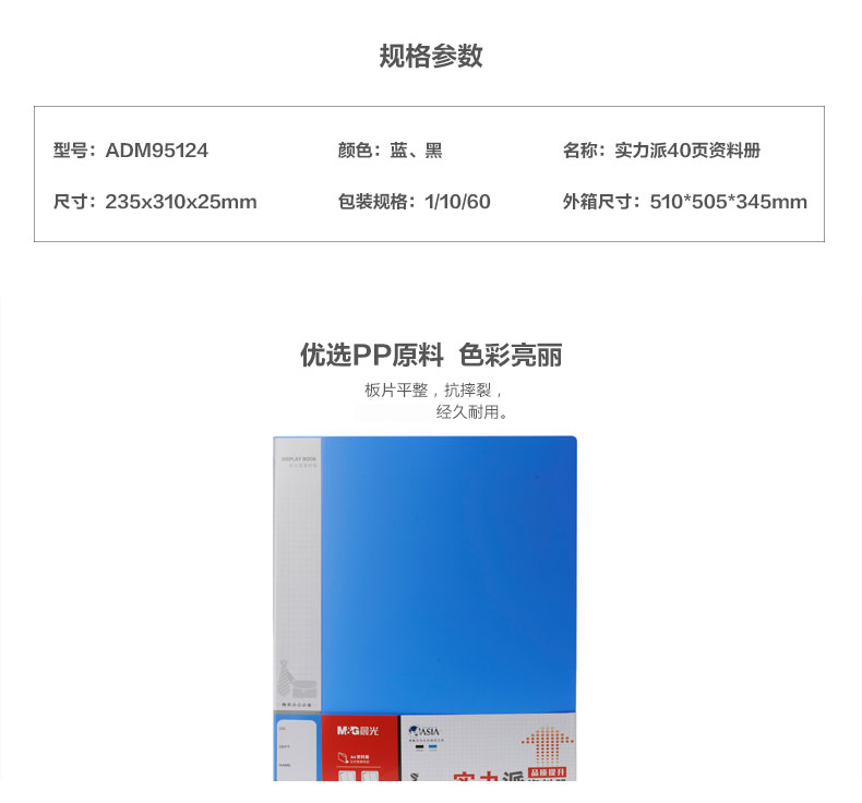 商品名称:晨光40页实力派资料册蓝ADM95124