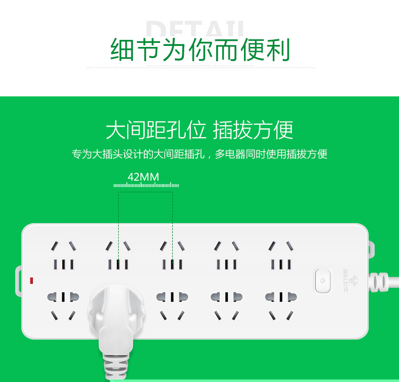 商品名称:公牛新国标 218 3米-10位 插排 3米 电源插座
