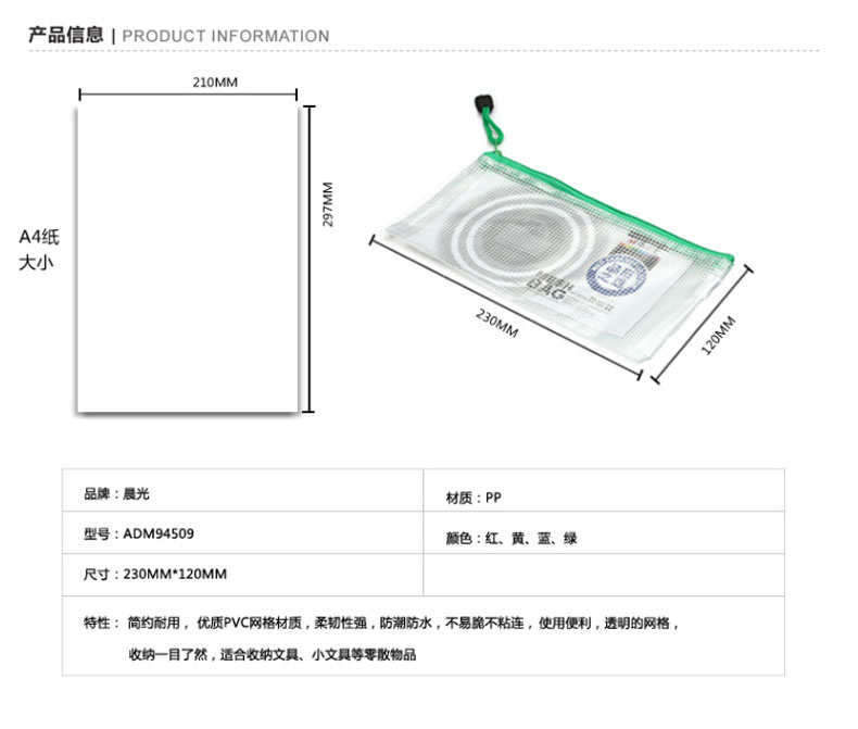 商品名称:晨光网格票据袋PVC ADM94509