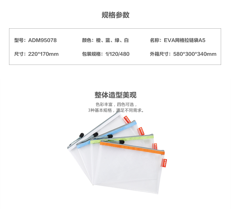 商品名称:晨光A5 EVA网格拉链袋ADM95078