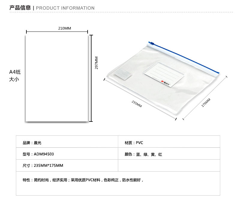 商品名称:晨光A5拉边袋PVC透明ADM94503