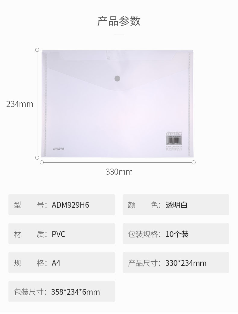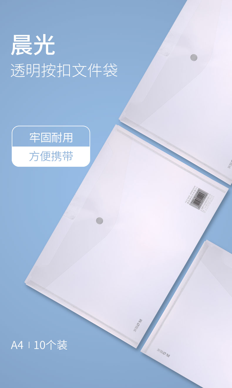 商品名称:晨光透明按扣文件袋A4 透明白ADM929H6 10个装